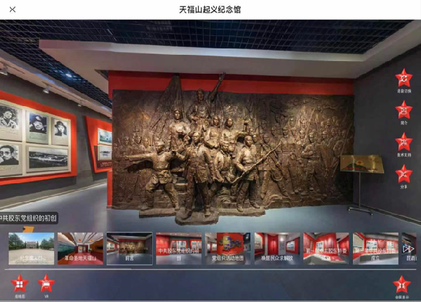 本次参观通过腾讯会议,运用360度全景观展技术,采取3D与图文、音频、视频等多媒体融合方式,以三维建模沉浸式还原天福山起义纪念馆现场。云端进入馆内,大家肃穆之感油然而生,一个个革命先烈光荣事迹如画卷一般展现在师生眼前,革命先烈为了民族解放事业,献出了宝贵生命,谱写了可歌可泣的壮丽诗篇。师生们云端了解了中共胶东特委会的诞生历程,通过“天福山上举义旗”“浴血抗日战敌顽”“天福铁军展雄风”“党群同心奠根基”等四个板块,学习了胶东抗日根据地党政军民同仇敌忾、共赴国难、生死与共、浴血奋战的无畏精神。