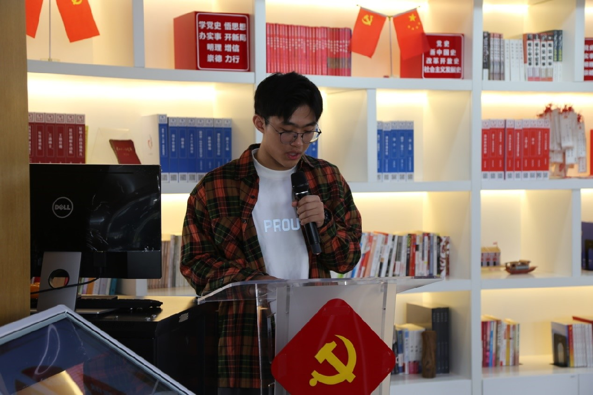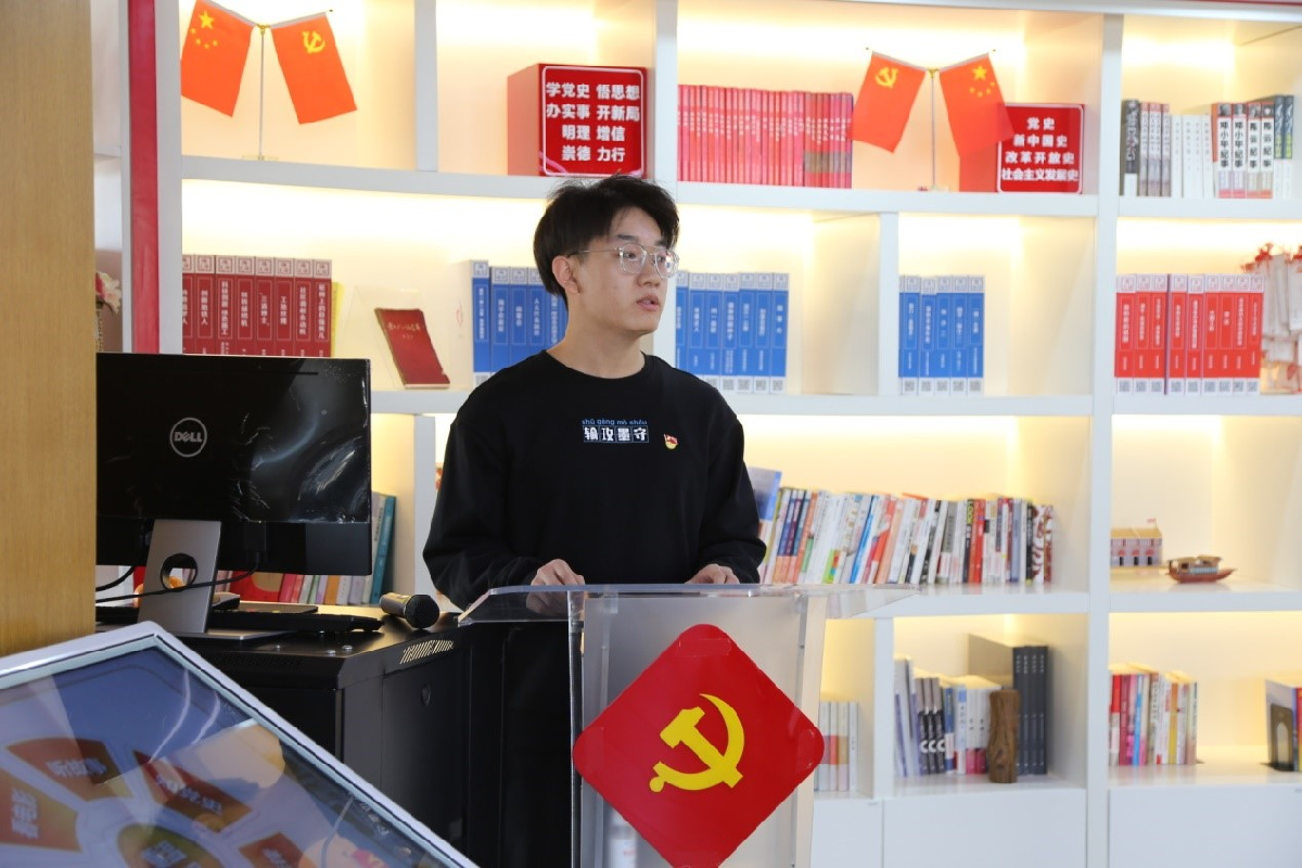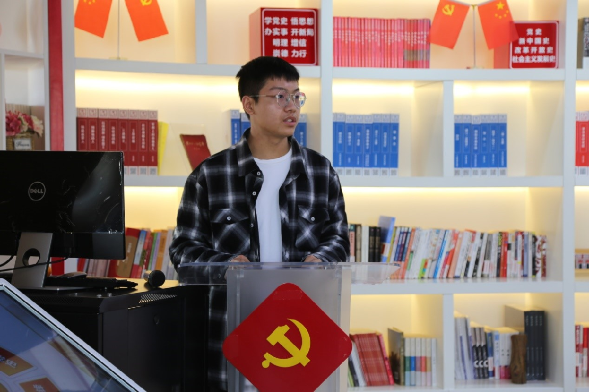 随后,在双鸽大厦党群服务站,师生开启了“沉浸式”党课学习,从“永不消失的电波”,到“追寻我心中的那艘红船”,师生更加深刻领悟如何更好地将理论精神“内化于心,外化于行”。学习中,“扬帆”大学生理论宣讲团成员郭庆同学和王嘉琪同学分别就延安精神和烈士校友事迹两个方面展开宣讲,提出我们新时代青年应当继承和发扬党的优良传统,充分发挥自身先锋模范作用,为党为国家为人民贡献自己的一份力量!