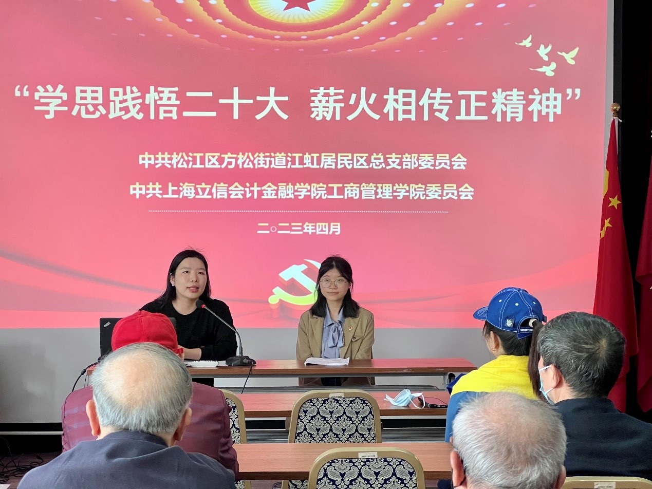 为深入推进党的二十大精神宣讲进社区,学习贯彻习近平新时代中国特色社会主义思想主题教育开展,推动学院党建共建走深走实,4月18日,学院青年马克思主义研究会指导老师么萌萌带领“星火”党的二十大精神宣讲小队成员张悦同学共同来到学院共建单位江虹社区党总支开展党的二十大精神宣讲。