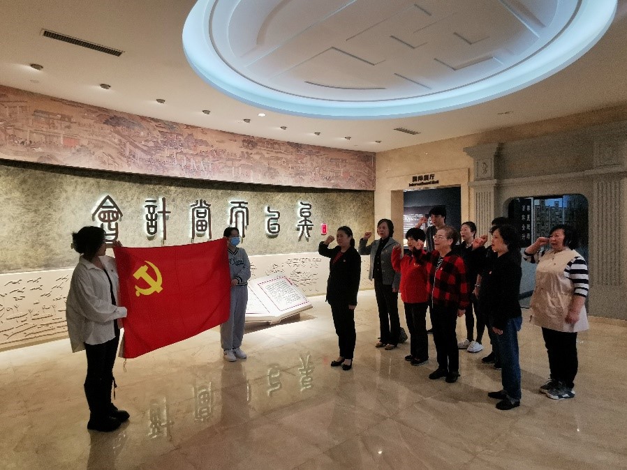 中国会计博物馆是由我校与立信会计师事务所、立信会计出版社合作共建,是全球第一个以会计为主题的博物馆。活动伊始,江虹社区党总支在李军红书记的带领下于博物馆序厅进行了庄严宣誓。随后,讲解同学带领江虹社区党总支党员同志们走进中国展厅开始参观。印有毛主席语录的账本、工分记录、粮票、税票等展品都鲜明的反映了新中国成立之后以及文革时期的会计的发展,大家在展柜前驻足停留,认真聆听学习。