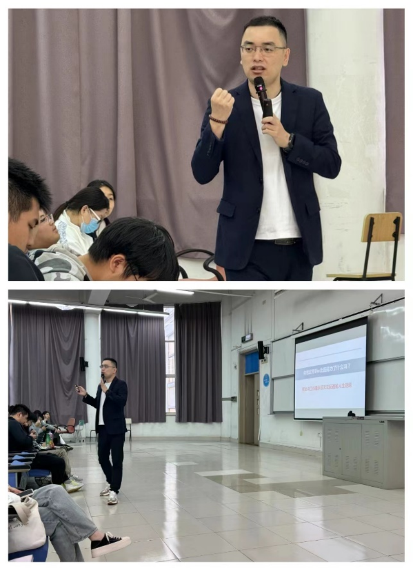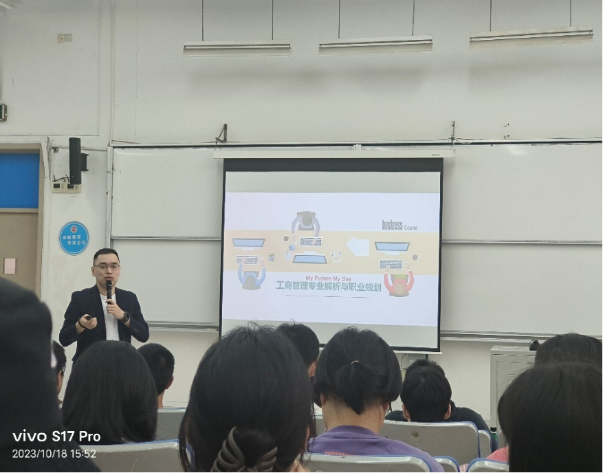 10月18日下午学院邀请到了21届优秀校友朱轶和东华大学职业发展导师王鹏远老师,给大一新生做了有关“职业生涯规划”——新生教育系列活动的讲座,全体23届学生出席参加。