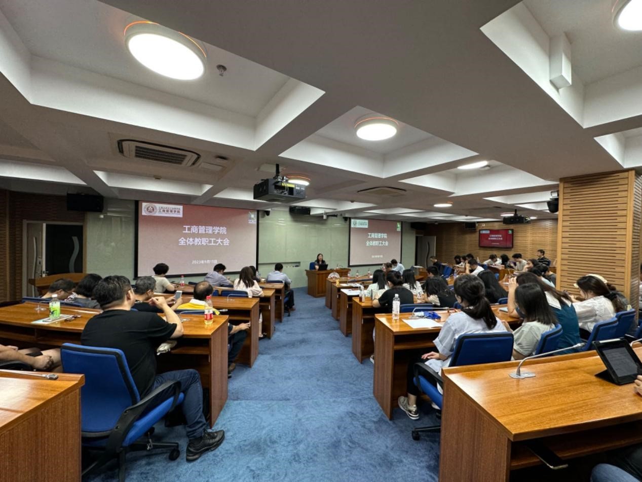 9月15日下午,学院在文翔路校区序伦大楼五楼多功能厅召开新学期全体教职工大会。学院党政领导班子及全体教职工参会,学院党委书记吴明华主持会议。