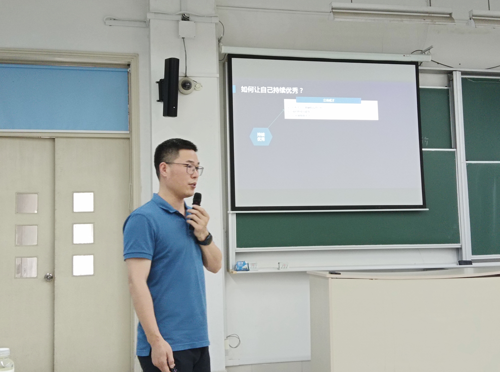 李斌鑫在企业数字化软件开发与咨询业、汽车服务采购业有丰富的工作和创业经验,曾任用友软件股份有限公司上海分公司销售经理,2014年至今创立并担任上海圣杨实业有限公司总经理,曾获2007年度上海市优秀毕业生,现兼任我校工商管理学院校友会会长,并在2022年疫情期间排除万难,为学校捐赠抗疫物资。他以启发学生“如何让自己持续优秀”为开场白,号召大家“立志成才”,强调大学期间要从基础理论、职业素养、道德情操等方面为职业准备夯实基础,并结合个人求学、职场经历以及企业用人需求,希望学生们能塑造利他思维、注重自我管理、提高学习能力、精读经典名著、拓宽知识广度、了解人情世故,努力将自己培养成懂业务、懂心理、懂法律的人力资源管理从业者。最后他就有关学生关心的考证、实习等问题予以回应和解答。