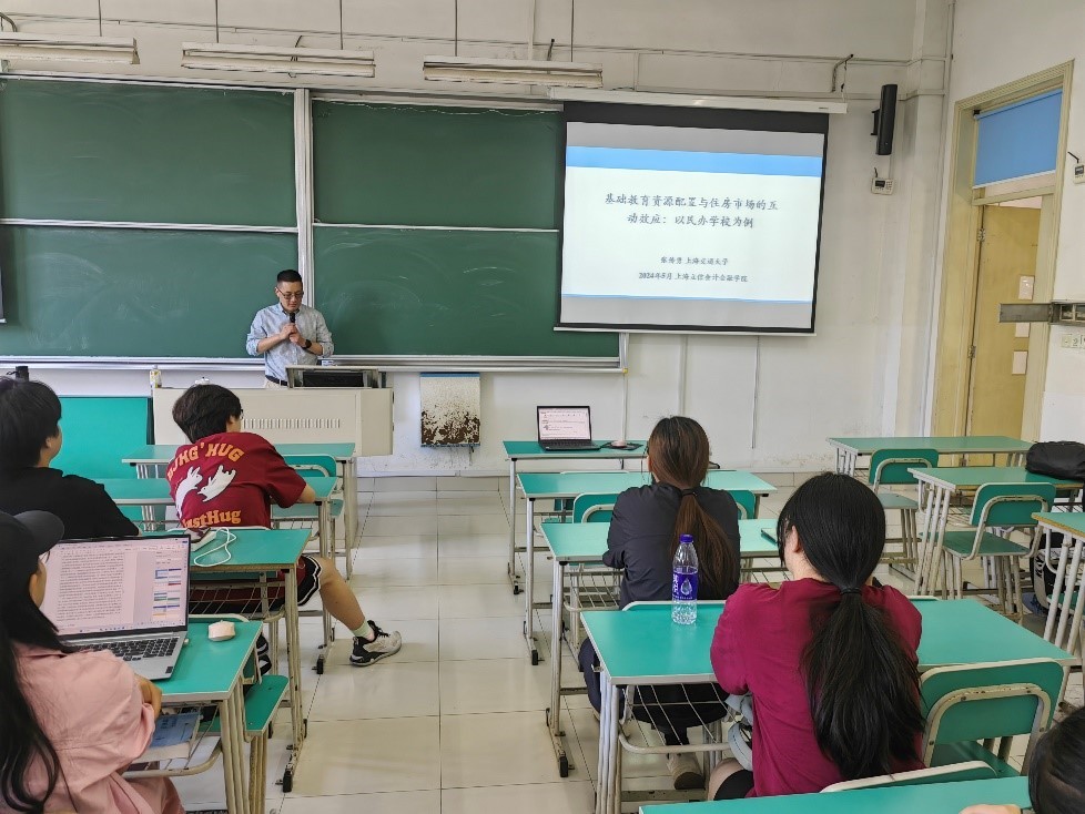 张教授以其学术视角层层展开,从城市管理的角度详细为学生讲解了教育资源配置对房地产市场影响的底层逻辑。并给学生介绍了相关的背景知识,以及城市经济学的基本原理,并分享了自己的学术研究之路和经验,为打算未来在学术之路上继续深造的同学提供宝贵建议,介绍专业未来的发展方向。
