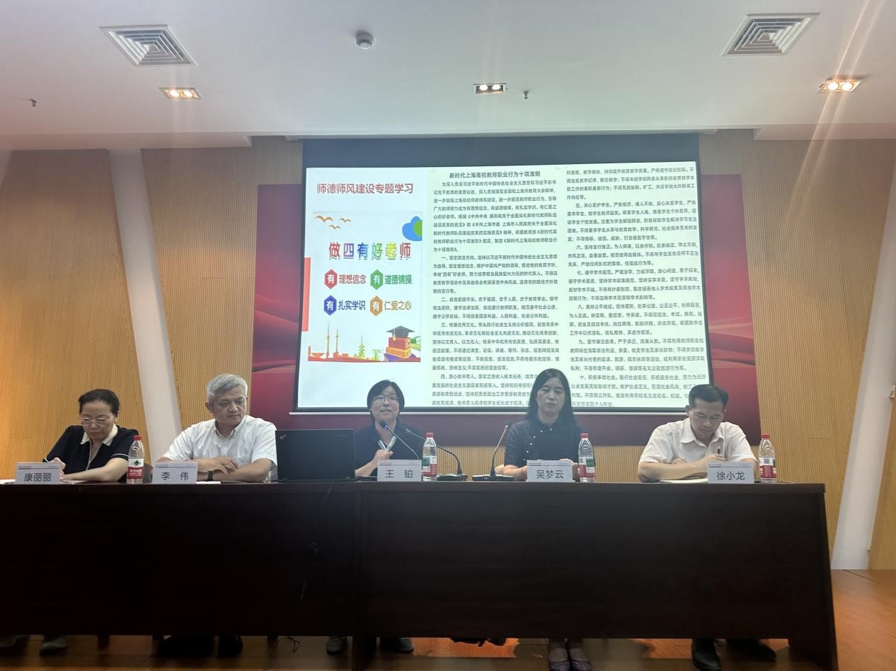 会议常态化开展了加强师德师风建设专题学习和警示教育,全体教职工深入学习了四例违反教师职业行为的典型案例和《新时代上海高校教师职业行为十项准则》。