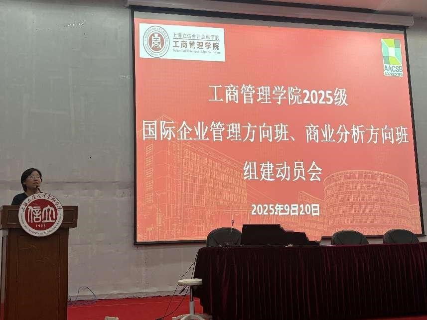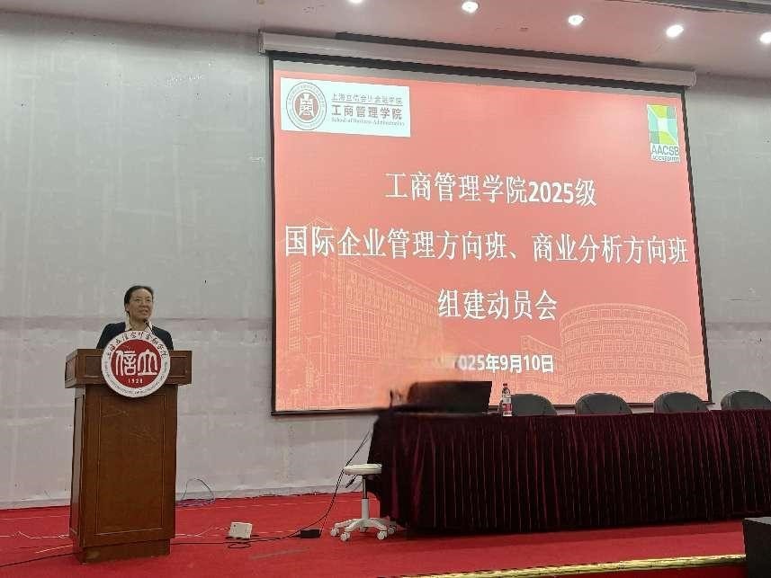 9月10日晚,学院组织2025级全体新生召开国际企业管理方向班、商业分析方向班组建动员会,会议由学院教学副院长康丽丽主持,学院党委书记王铂、党委副书记、副院长李伟、工商管理专业主任施堃、商业分析方向班负责人薛明以及工商管理专业教授、“瑜你同行”工作室负责人陈瑜出席会议。