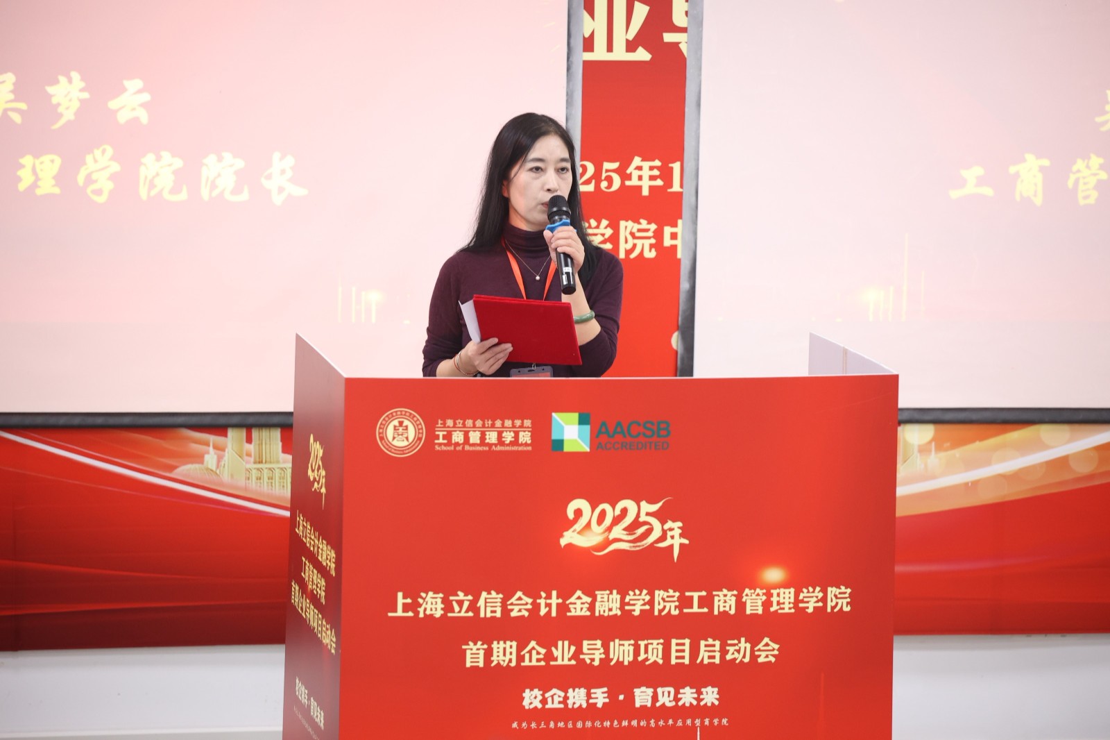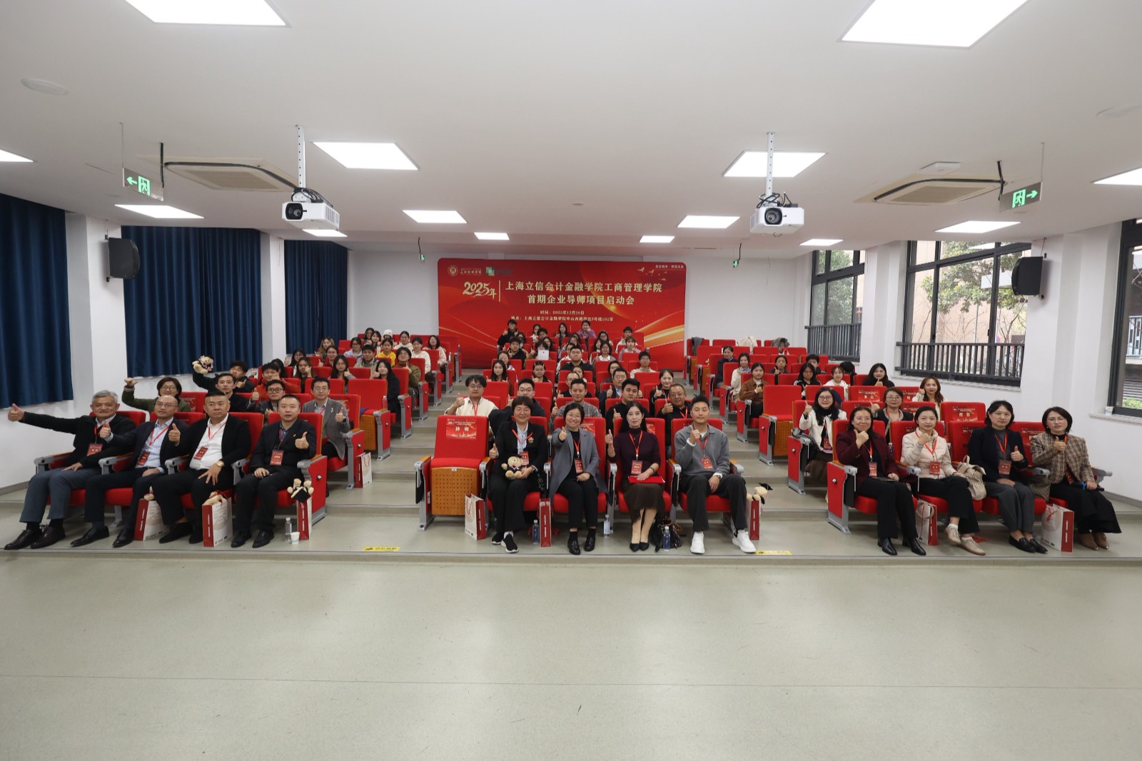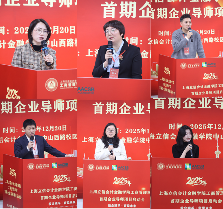 2025年12月20日下午,学院首期企业导师项目启动会在徐汇校区隆重举行。学院党委书记王铂、院长吴梦云、副书记李伟、副院长康丽丽,与来自金融、科技、互联网、高端制造、文化创意等领域的15位杰出企业高管、创始人,以及55名2025级新生代表齐聚一堂,共同见证了这一深化产教融合、创新育人模式的重要时刻。