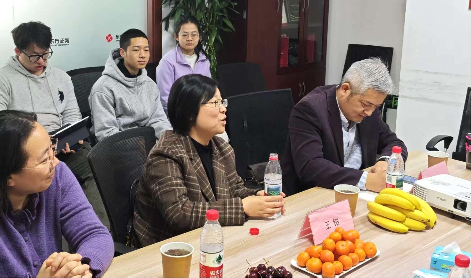 为贯彻落实教育部关于“访企拓岗促就业”专项行动的工作要求,深化产教融合、校企合作,开拓更多优质就业岗位与实习实践资源,2026年1月14日上午,学院党委书记王铂,党委副书记、副院长李伟,副院长康丽丽、徐小龙,产教融合中心(筹)主任陈瑜及中心副主任(筹)段霄一行六人,赴东方证券股份有限公司新松江路营业部开展专题调研与交流活动。东方证券新松江路营业部总经理孙圳及业务骨干代表热情接待并参与座谈。