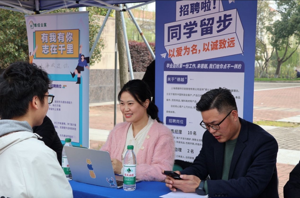 3月25日,学院“亮剑春招 冲刺2026”2026届毕业生春季专场招聘会在昭信堂前广场举行。学院领导、辅导员及2026届毕业生参加活动。