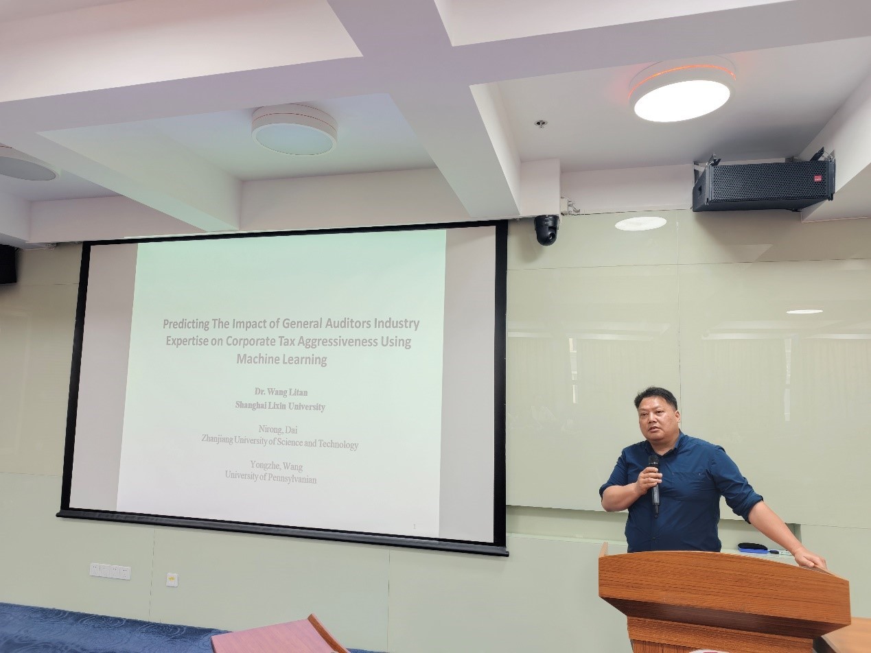2025年6月25日下午,第六期AI赋能交叉学科沙龙在文翔路校区顺利举行。本次沙龙邀请了财税与公共管理学院汪利锬副教授和工商管理学院彭博担任主讲人,工商管理学院徐建主持,相关学院师生代表近30人参加本次沙龙。
