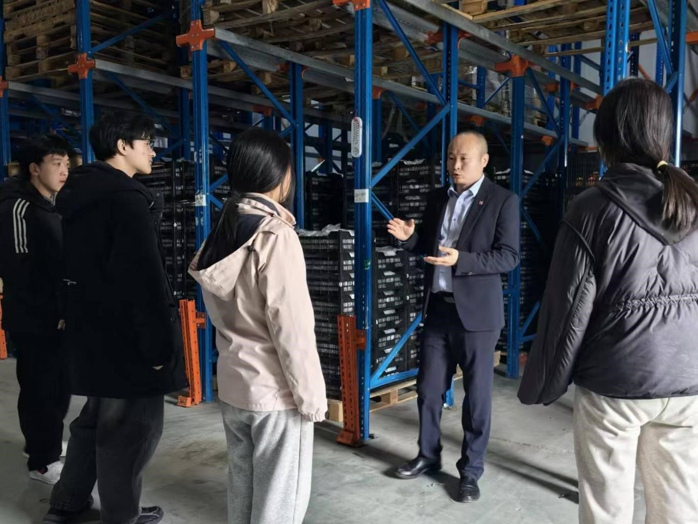 小组成员关沫齐分享道:“通过对郭峰导师所在的上海振疆实业有限公司冷链仓储配置及生产包装车间的实地调研,我对专业的认知突破了课本局限。在与导师的行业趋势研讨中,深刻认识到理论需对接产业痛点方能体现价值,传统产业在人工智能时代必须持续转型升级。此次参访不仅积累了一线实践经验,更明晰了从校园到职场的成长路径——既要夯实专业基础,更要在产业实践中寻求解决方案。校企协同机制为我们的成长提供了高效通道。”