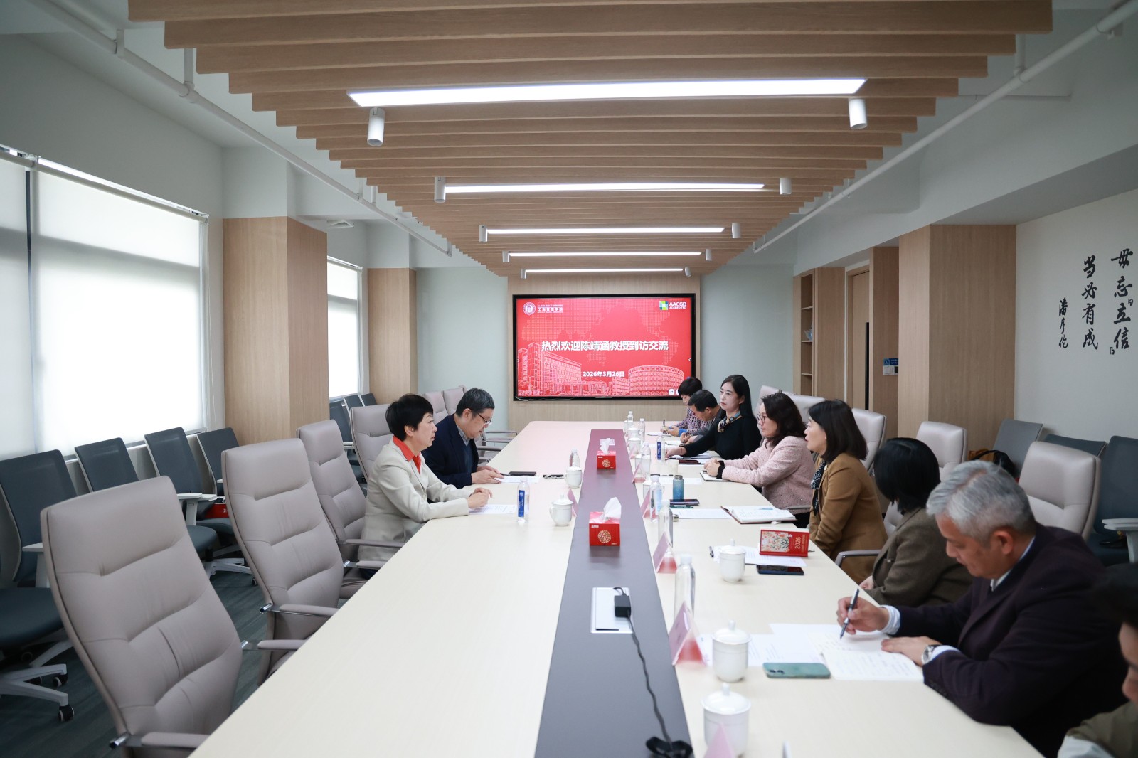 3月26日,AACSB国际认证资深评审专家、英国肯特大学会计与金融学首席教授陈靖涵到访我校,校党委副书记、院长杨力,校党委常委、副院长刘永琴,国际交流处负责人,学院领导班子会见来宾。双方围绕国际合作、AACSB助力国际化办学、商科教育应对科技变革的转型等议题开展深度交流。